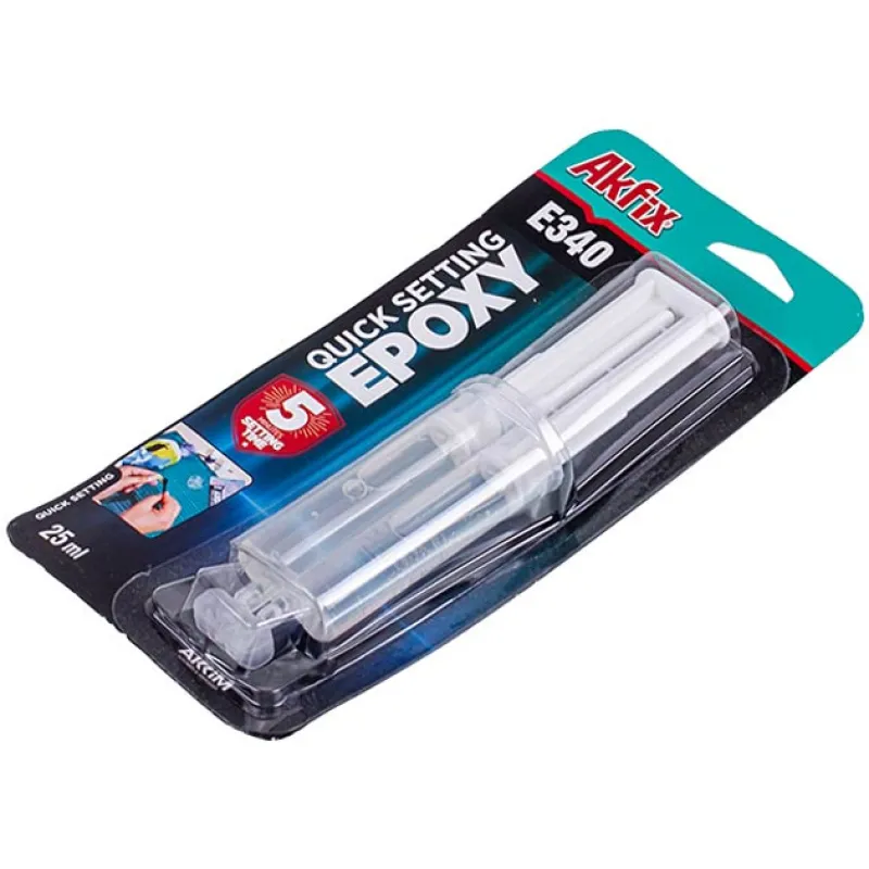 Akfix E340 — двухкомпонентный быстросхватывающийся эпоксидный клей в удобном шприце. Обеспечивает прочное, водостойкое соединение различных материалов всего за 5 минут. Идеален для быстрых ремонтных и монтажных работ.