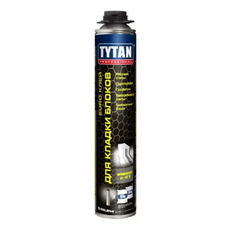 Tytan Professional GUN — высококачественный пено-клей для строительства и ремонта. Предназначен для надёжного склеивания строительных блоков и выравнивания неровностей до 5 мм. Обеспечивает быстрое схватывание, тепло- и звукоизоляцию, а также устойчивость к плесени и грибку.